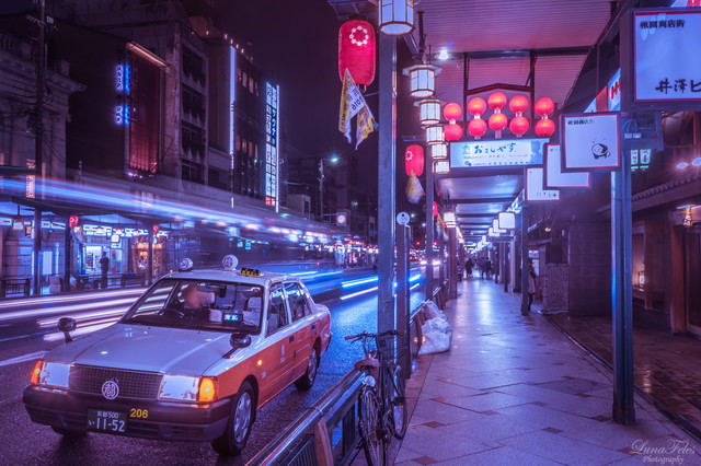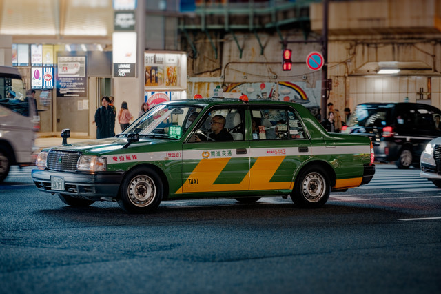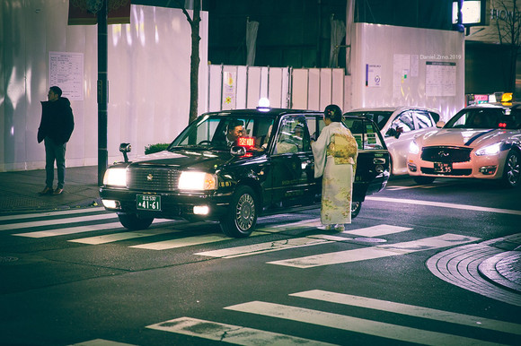 #atmosphere #atmospheric #bye #cab #city #classic #color #crossing #crossroad #goodbye #japan #light #lights #mood #night #people #person #photo #photography #print #single #standing #street #taxi #tokyo #urban #wave #art