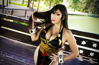 Nice pose! This is one high kick! You don't only have the looks, but you are also fit enough to make a great Chun-li cosplay! Maybe you could try cosplaying a tekken character next, like Asuka or Lili.