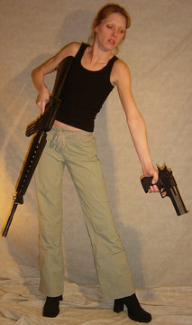 Note: The BB gun is not loaded and the safety is on. I only rest my finger on the trigger for looks but I never pull it.Model: (Sarah Schaffrath) aka Me