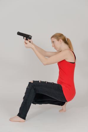 #action #aim #female #gun #shoot #sitting #stock #fire #targetpractice