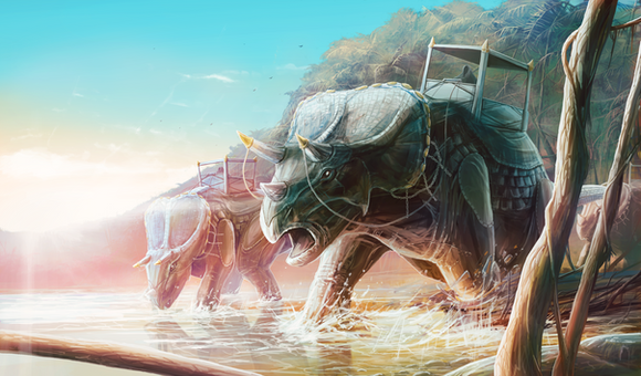 I like the misty setting, and the steam from his nose! It's all in the details, great work!
