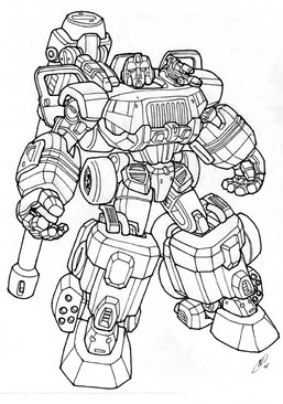 Finally got around to getting this inked and scanned. next is colors when I get the time for that.The character is Hubcap from a rare transformer toy line that not to many people know about.