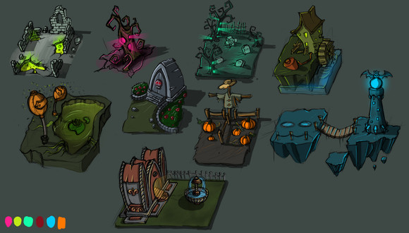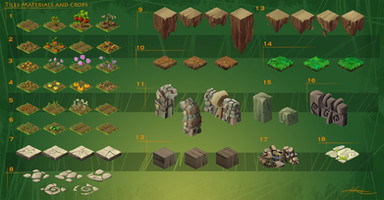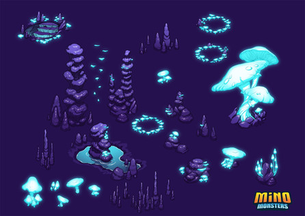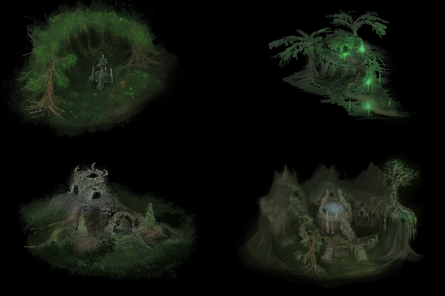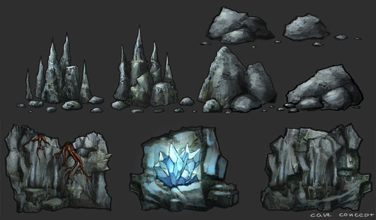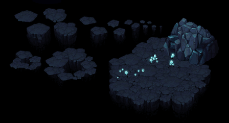 Another set of Sacredseasons2 assests, Some of these weren't going to have the mid sections parts glowing but I felt like it would be neat to have them glowing and be interestingly odd looking elements rather than the plain monotone rock colors.Drawing by