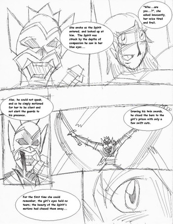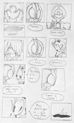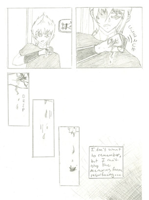Draw comic page little bit other. The comic story is describe that Myotismon is unconsciousness. His hand is hold by someone and he wakes.
