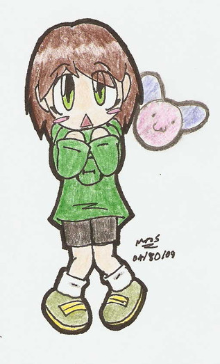 *giggles* hehe thats cute! u did a very nice job!! her expression is adorable!! ^w^