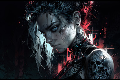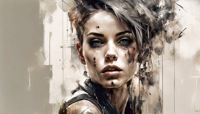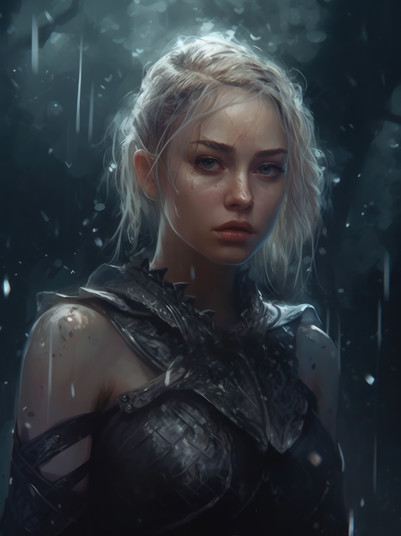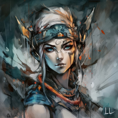 In this futuristic artwork made by me with AI, we see a portrait of a beautiful female hybrid warrior in light colors that captures the grace and power of this unique character.Please, kindly note: I do not use any ART-WORK as a reference to create my AI-Art. I use my imagination and well spent effort to develop my AI-Art. My results are based on human design thinking and decision-making.