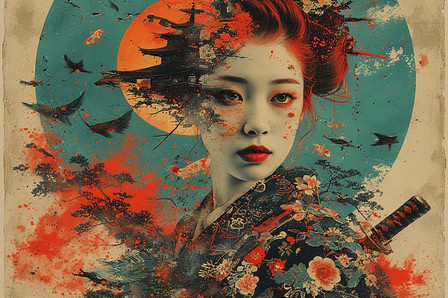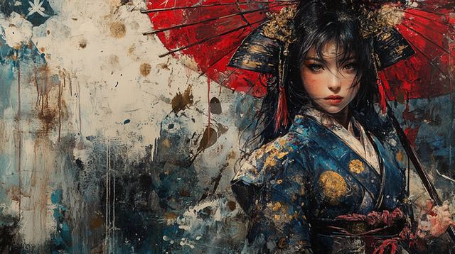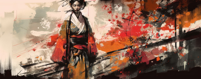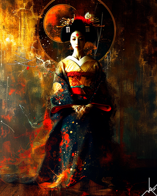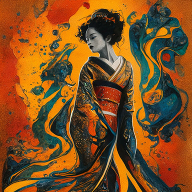 In this futuristic artwork made by me with AI, we see a woman standing gracefully in a traditional Japanese kimono. Her kimono is exquisitely designed with delicate autumn patterns.Please, kindly note: I do not use any ART-WORK as a reference to create my AI-Art. I use my imagination and well spent effort to develop my AI-Art. My results are based on human design thinking and decision-making.