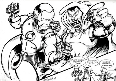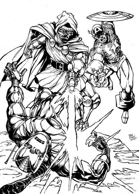 I recognize Batman and Robocop here fighting against Dr. Doom, but who is that other one? Is that Luke Skywalker?