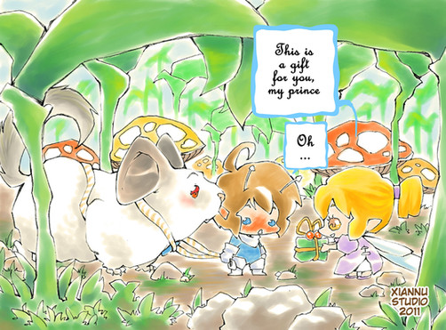 Leo first saw Shin playing on the grass with his lamb and he immediately felt for Shinβs cute and innocent looking. For awhile thinking how to approach Shin, Leo caught his pet β Lionie and gave Shin as a greeting gift. ^__^