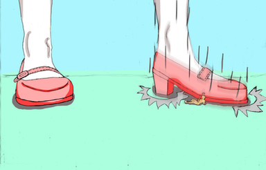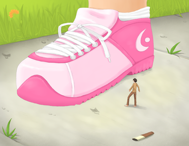 nice job on the perspective, particularly like how the shoe turned out, and that bit of cel shading touch is good