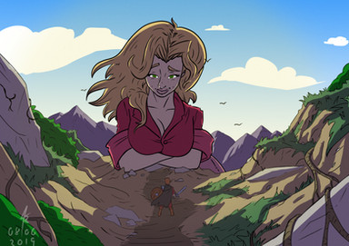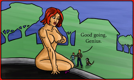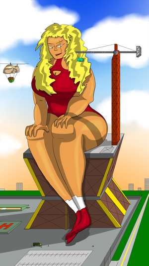 Oh dear. Love the hint at the devastating rampage she's about to go on for the sake of privacy. Since she's so big, I'm sure the village heard it and screams of panic broke out. Alas, given she doesn't want to keep her date waiting thus not willing to given time for evacuation, the earth starts to quake, and they find her dirty soles descending mercilessly upon them....