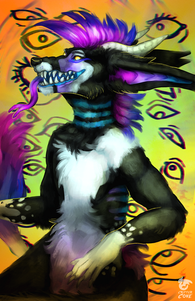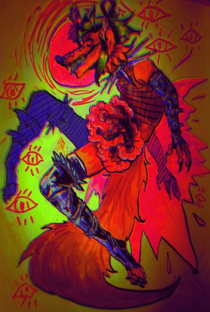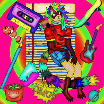 #anthro #body #creepy #cute #furry #green #horror #macabre #media #mixed #painting #rave #red #scopophobia #surreal #eyestrain #toycore #poscas #art