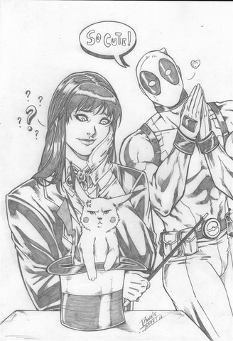 pikachu zaps deadpool.
