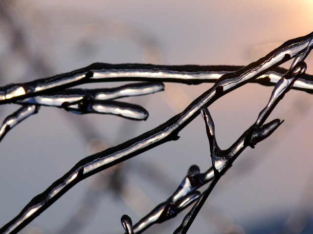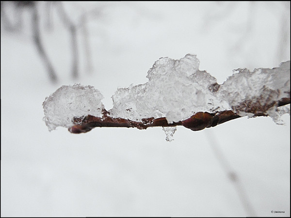 I like it. the DOF is perfect and adds a real sence of focus to the ice. Curious, what was behind the branch. The green backgroud is very nice! Well done!