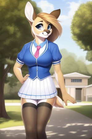 anyway you two did a great work. corgis are always cute and this boy is adorable! the long red hair and lovely face are very very well done. the short tail and the panties are super cute and that's a very very cute booty over there X3 heh the park on the background and all the colors and shadows look amazing as usual. awesome pic!