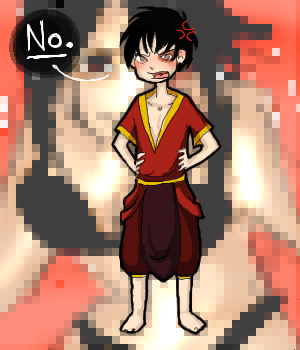 The folds on the shirt confused me, because I didn't know exactly how the shirt fell onto his body, so I just guessed. X3; Plus, I get really stiff when it comes to the pen tool, so everything looks pretty hard. The hair... -thinks- Yeah, it looks pretty solid and unhair like. X__X; Sorry, I'm new to the show's style.