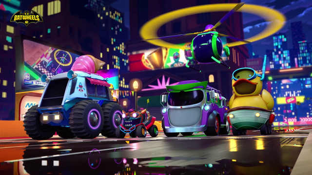 The Riddler's Question-Telling Helicopter And A Team Member Of The Legion Of ZoomAs Seen In Batwheels