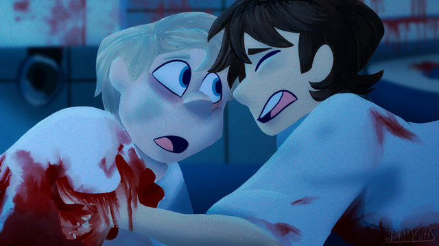 also alot of my horror paintings im not marking mature because lets be honest we've all seen minor cuts and blood. this aint that bad.