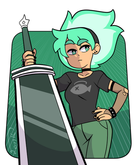 #digitalart #originalcharacter #characterdesign #cartoon #doodle #redhair #axe #cute #female #girl #greeneyes #jacket #ponytail #red #redhead #undercut #woman #ponytailhair #frecklesgirl #clipstudiopaint
