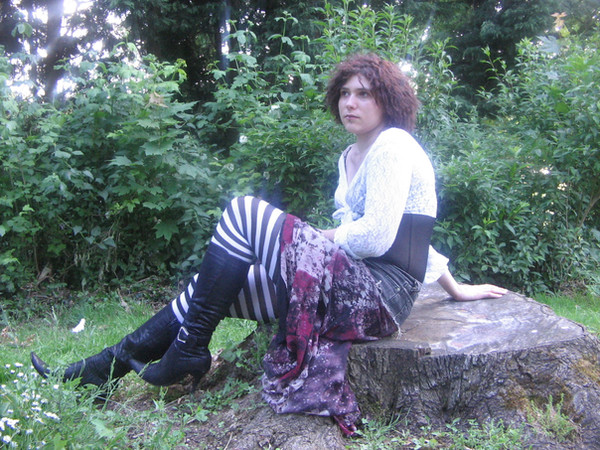 I love the concept behind this. I alos like her pose - she has lovely legs! I'm not so sure about the makeup though - to me it looks a bit much. I would have gone with makeup that complemented the colours of the clothing more. But I guess that is just me ^_^ She still looks lovely!