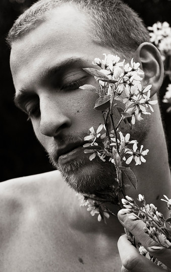 #beauty #blackandwhite #blossoms #flowers #male #model #natural #nature #people #portrait #spring