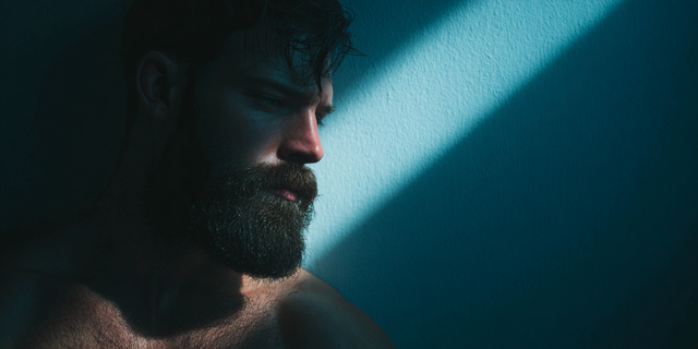 A very nice bearded man in exisiting light. Well done. By not looking back in the camera the model gives way to spectators.