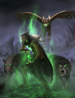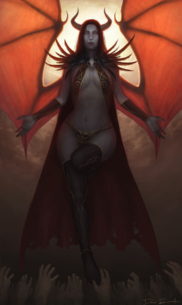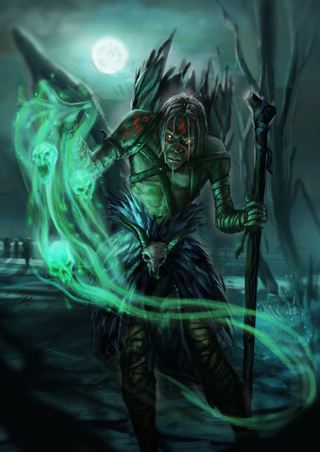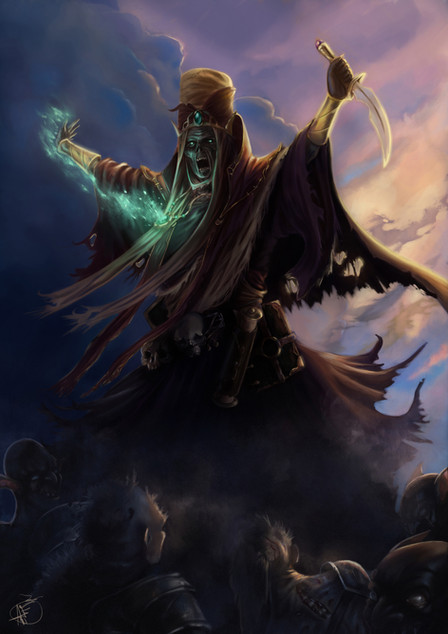 This is fantastic work! In my opinion it has a wonderful composition of hellish power and kinda pure beauty on the top. Β I simply love how the skull (the necromancer I guess?) is under green underworld fire standing beneath the starry sky.