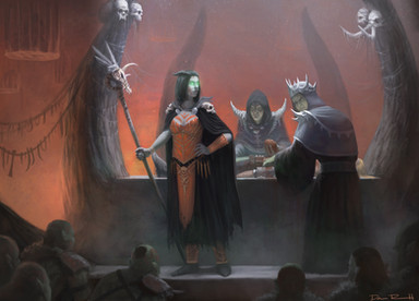 Really cool! I especially like the glowing effect from his skulls and their eyes in the background, really nice touch.