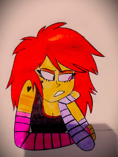heres another drawing of the red haired i drew a while backi also ultimately decided to keep Red as her name so uhhh yeah... Derp
