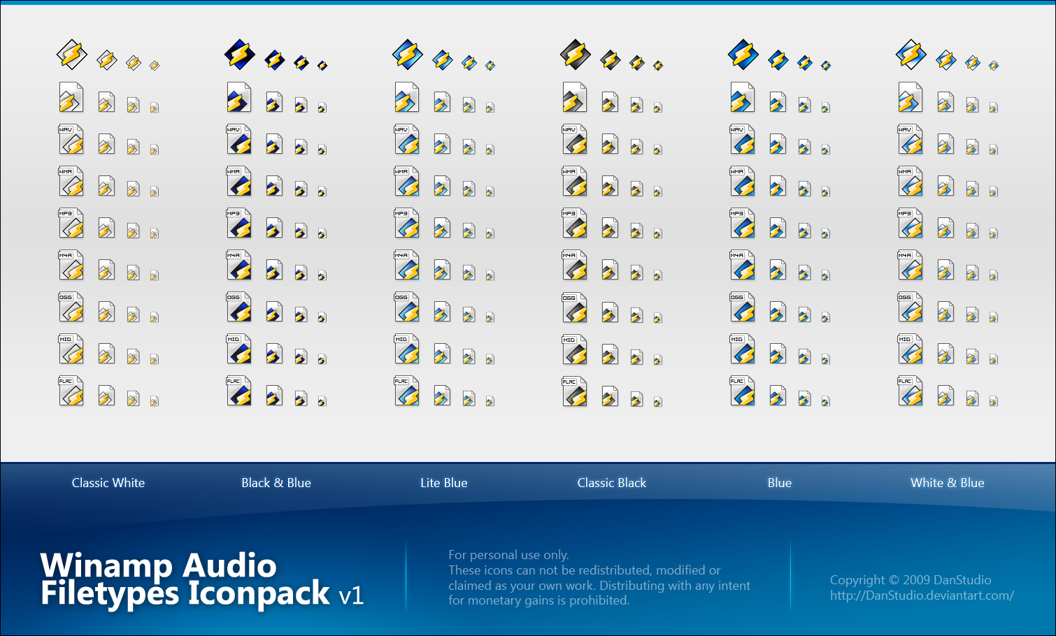 Winamp Audio Filetypes Iconpack v1.48x48 icons contain information about file format. I did my best to make them accurate and sharp (48x48 and 32x32 px sizes were drawn separately).