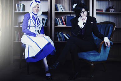 Wow. I didn't know you still did Kuroshitsuji cosplays as well. So good to see that you do. That is one seriously epic scenery! I love the window! I love the candle sstick too. It has an epic atmosphere. Perfect for the series!