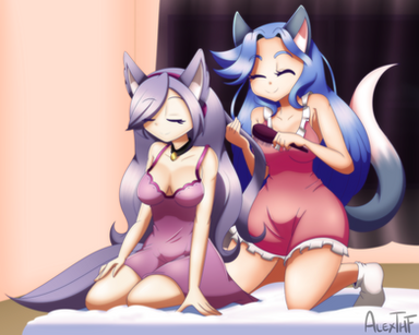 A pic made by the coolMikki doesn't have much time to do some fine grooming but she always has someone willing to help her with it. This time she was able to sweet talk Dante to do it, not that he minded.