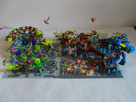 The Corrupter is one of the more interesting aliens in the Galactic Rangers series. While it may look like an alien, it's actually a stolen Spartan mobile suit that has been outfitted with alien technology. The reason this piece of alien tech is called the corrupter is because its shots from its beam cannon can infect other pieces of human tech and turn it into organic alien technology. Going over some of the features, the Corrupter is very tall, and quite pose-able. If you've seen some of my other creations, you know that the mobility of these figures is very good. The wings are also able to move around for action poses as well. While the blaster may not be functional, there is a lot of fun to have here. If you would like to purchase this set, and would like the minifigure shown above, it is an additional $5.00 charge. Otherwise, it is sold at the price as advertised.