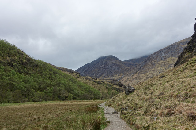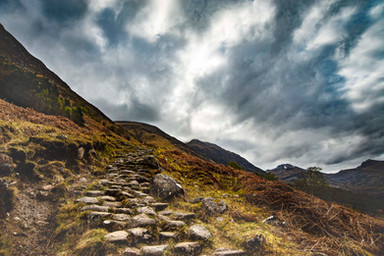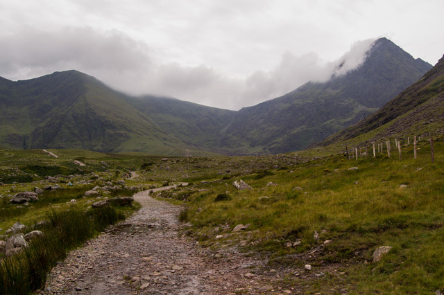 lovely atmosperic shot. The path leads you right through the image and into the mountain range. The bleak sky adds interest and atmosphere to the image xx