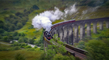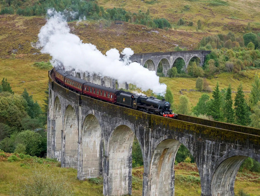 Glenfinnan viaduct with the Jacobite steam train.Harry Potter fans will recognise this as the Howarts express and the Glenfinnan viaduct from the movie.