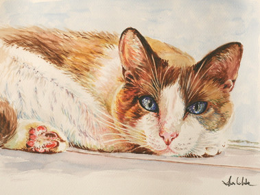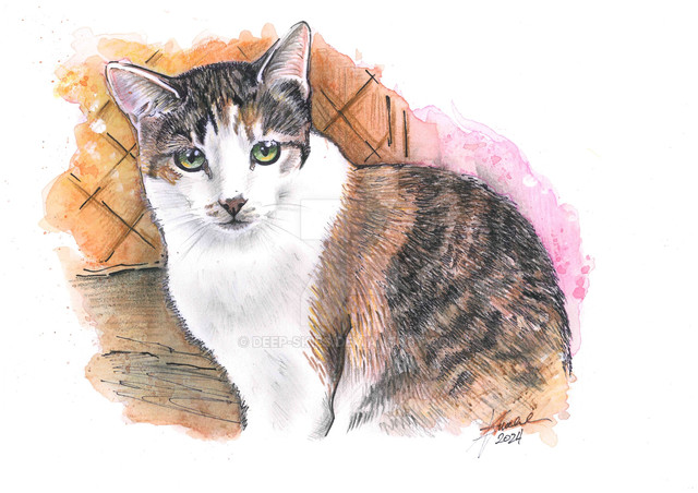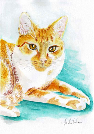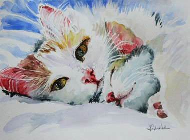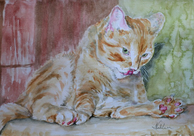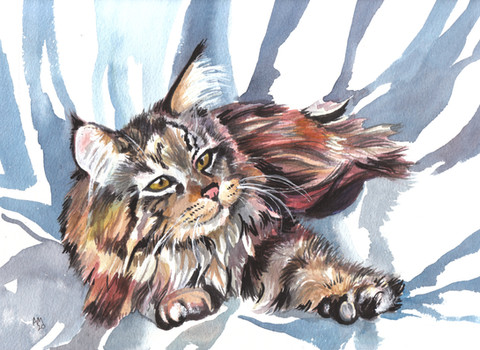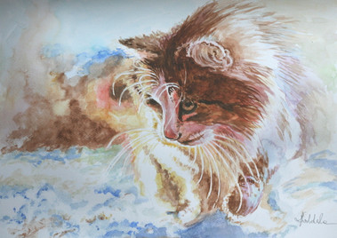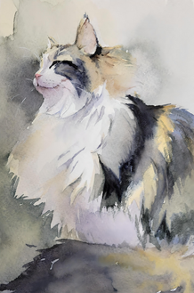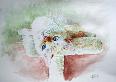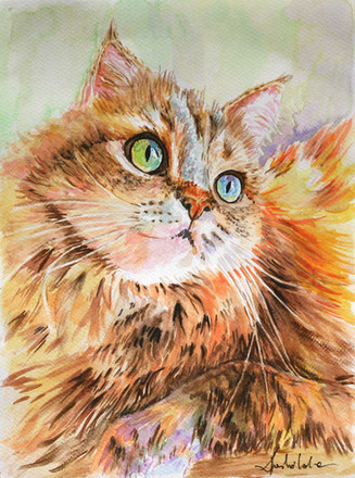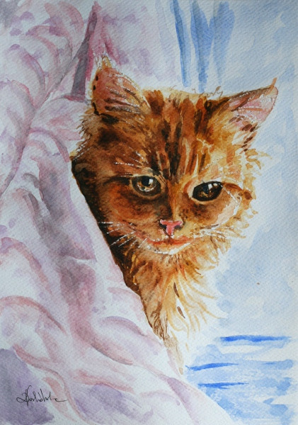 Wow! You're watercolor skills are amazing! I love the how it's all put together, but not perfectly to show it's a cat