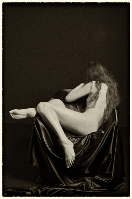 Great use of lighting to make his face stand out against the black hood with its curved folds (against the background and the straight lines). Interesting look -- someone dangerous, but not malevolent. Not someone to be trifled with, but could end up being the man you want guarding your back.....