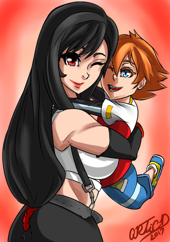 Request by heroicsonnyjimChris Thorndyke and Tifa Lockhart as mother and son having a little hug..