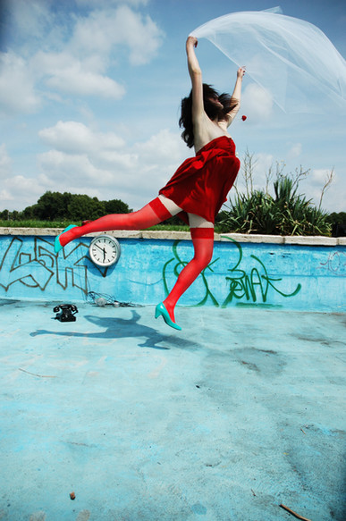 #atmosphere #bath #dress #fashion #people #pool #red #tower