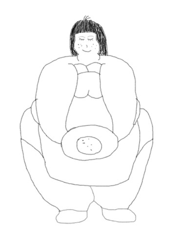 He's smiling. And I guess you could call him the pizza guy, but I wanted him to be the boyfriend.