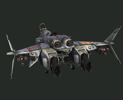 The revision of one of the Enigma paint schemes for Burning Bushes team, previously shown as a Battroid, this time in Fighter mode.