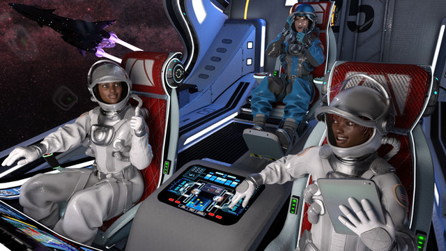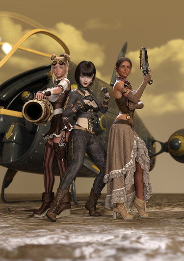 Felt cute, decided to re-render an old pic of my Macross pilots. Used updated versions of the original characters.
