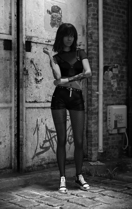 #3d #portrait #digitalart #abandoned #converse #conversesneakers #daz3d #dazstudio #dilapidated #iray #jacket #shirt #sneakers #streetart #tenement #liminalspace #genesis8female