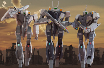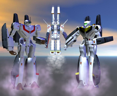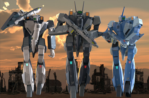 A different view of a previous pic dapperman.deviantart.com/art/G… , showing off the front and back of the texture. Think I like this one better. And thanks to my fellow Macross nerd Giorgio who prompted me to check the scale of the Battroids (12.68 meters, had to scale them to 88.5%).Update - Changed one Battroid texture to a Hikaru/Rick VF-1J paint scheme, because having two Roy Fokkers running around was just kinda silly!