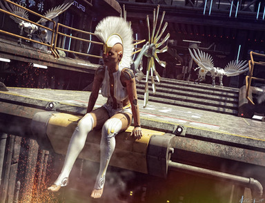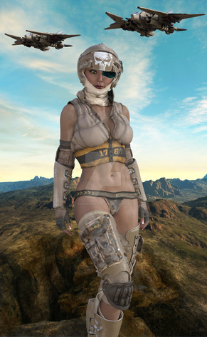 #3d #3dx #blonde #brownskin #clouds #daz3d #dazstudio #feet #iray #nudeart #pilot #sciencefiction #scifi #skies #spaceship #genesis8female