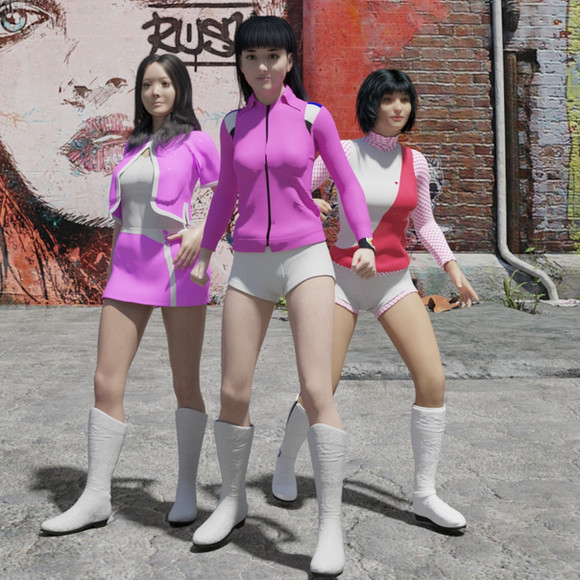 The ladies of Fire Snakes squadron investigate a mystery in the back alleys of the air base. Captain Dina Campbell tells the skeptical Hyosung Bae to get her arse in gear, while Ever Seiyama and H.K. Spendlove consider what may lie in wait. Behind them, Xiaqi Iyanez and the Zentradi Laelea Foliar discuss the situation. The men of the squadron are absent⦠because I hadn't built their uniforms yet.First real attempt at making and using dynamic clothing for my squad of original Macross pilots, and their properties are still being worked out. The design is still evolving. Almost all of them are wearing different colored stripes now. Will probably abandon them in favor of conforming/dynamic hybrid clothes. Half of the figures have been replaced with improved versions, but I figured I'd share anyway.