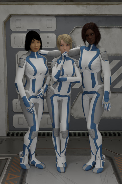 Wow. Everything has improved so much. And it's not like it wasn't good before. The light, the morphs, the materials... your skills keep advancing. And I really like the additional character. She adds a bit of playfulness to the group, who all seem very accomplished and confident. I really like all of their poses.