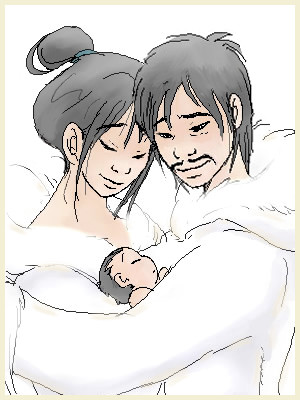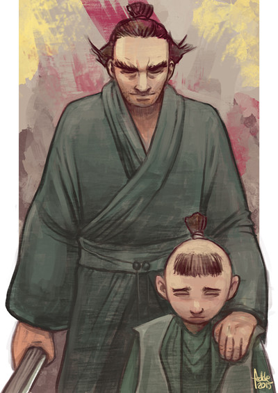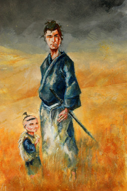 Ishikawa Goemon is a popular Japanese hero, that lived in 16th century. He stole the gold from the rich, and gave it to the poor, but unlike Robin Hood, he was caught, and sentenced to death by being boiled alive in an iron cauldron along with his small son. Due to the legend, he was able to save his son by holding him above the oil until his own death.Watercolour, gouache, A4