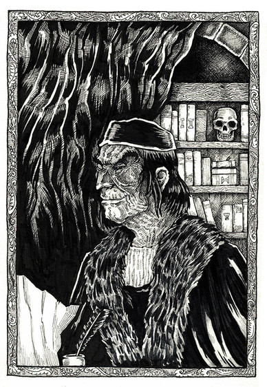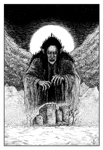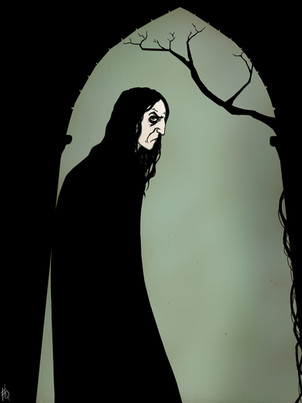 Morwen, as she was found by Hurin - by the gravestone.An illustration to "The Silmarillion" by J.R.R.Tolkien
