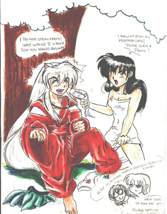 What Inuyasha finds the first time he goes through Kagome's back pack!It's a gag done before I know, but I just had to. It was calling me. So here it sits. 3 days of work with adobe photoshop and a roughly sketched scanned in picture. Comments welcome!